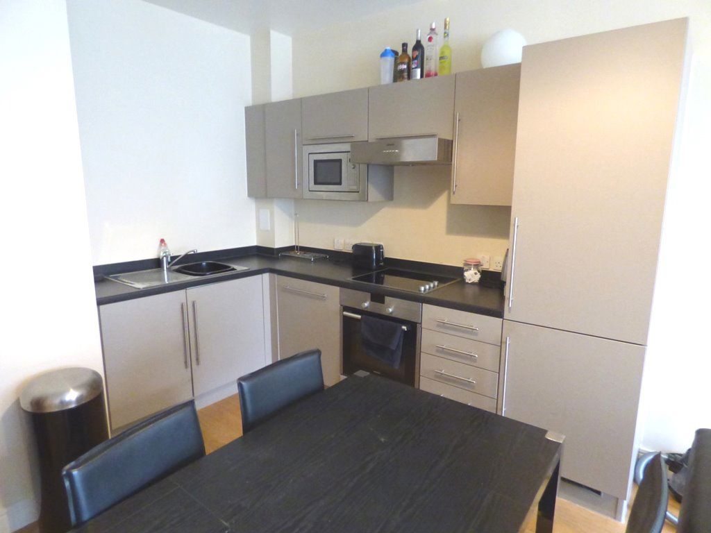 MODERN ONE DOUBLE BEDROOM FIRST FLOOR FULLY FURNISHED APARTMENT...with allocated parking space, and benefits from a Video Door Entry System with both lift and stair access. Entrance Hallway, Open Plan contemporary Lounge and Dining area with a Brand New modern high gloss finish kitchen, with integrated appliances including dishwasher, built in microwave, electric oven and hob, washer/dryer. One double bedroom. A spacious contemporary Bathroom with shower over bath and a separate shower cubicle. The property is Double Glazed throughout. no pets. no smoking. Perfect for a single professional. AVAILABLE 9/4/2026