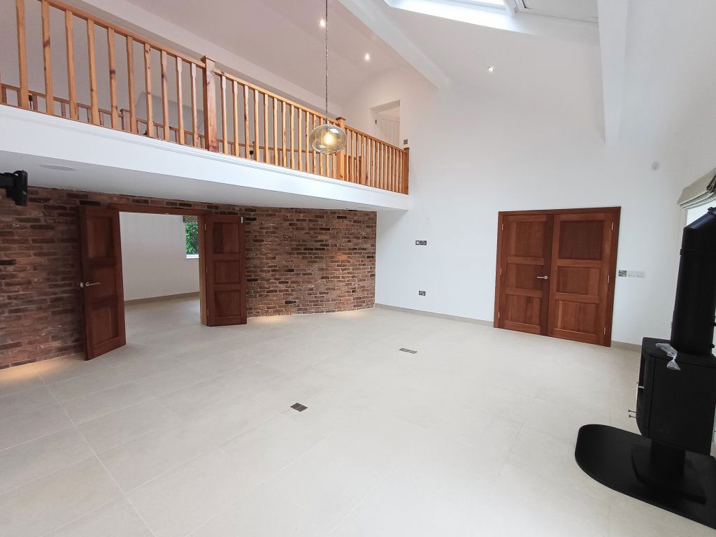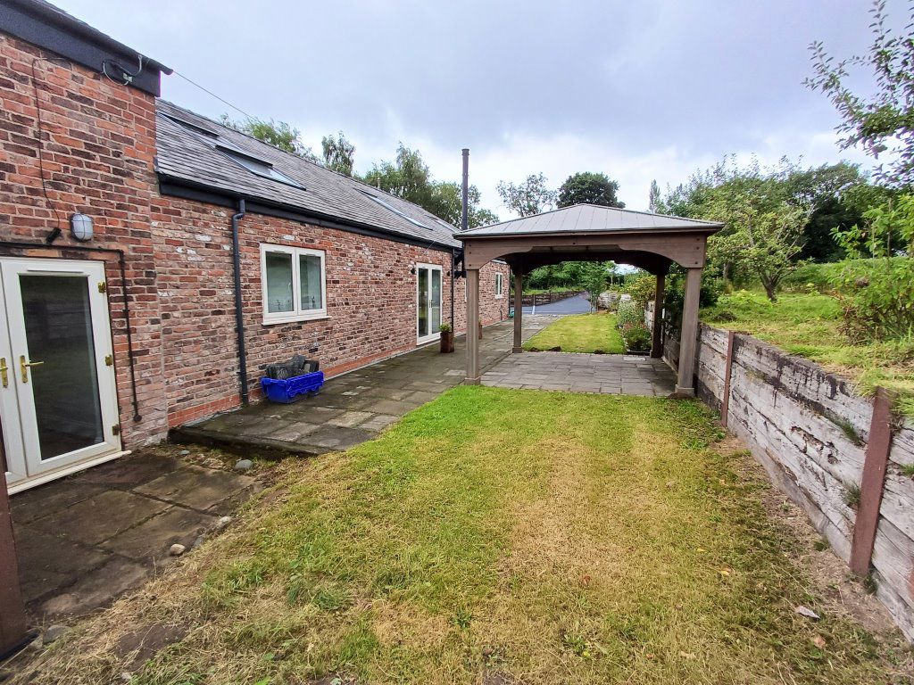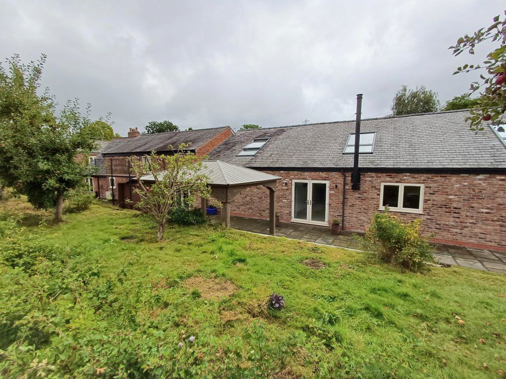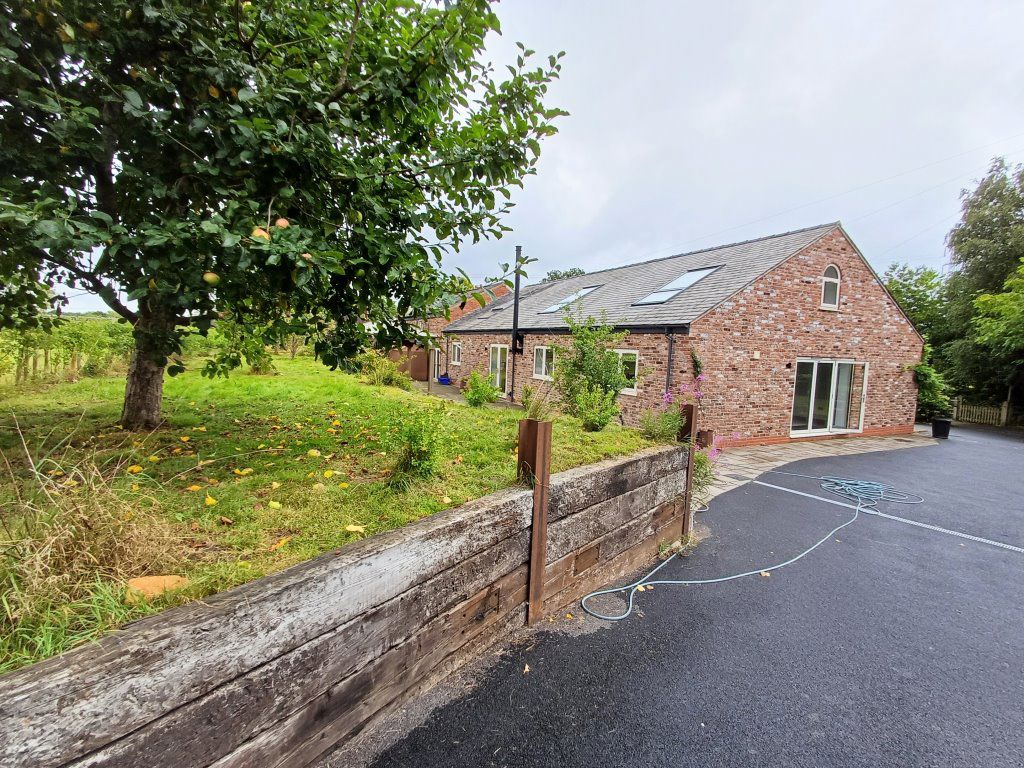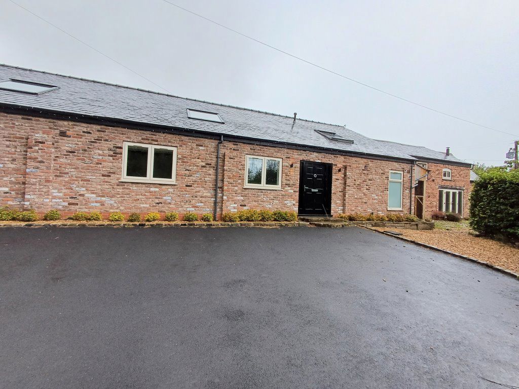 A FOUR BEDROOM EXTENDED ENERGY EFFICIENT COTTAGE!! Sitting on a south westerly plot this stunning cottage boasts a chic, contemporary design throughout and further benefits from abundant living space with classic wooden floors, original beams, contemporary bathroom suites and a stylish kitchen diner. Situated in a superb, rural position with outstanding views over the Cheshire countryside, accessed from Newton Hall Lane over a private unadopted road and bridleway. The accommodation comprises of open plan living to the ground floor with underfloor ground sourced underground heat pump heating and internet linked power. Access through a large sweeping entrance hallway, spacious bright and airy lounge with French doors leading onto the patio garden, log burner, dining kitchen with integrated larder fridge, integrated dishwasher, range induction hob and oven, large central island with storage, double Belfast sink, Bi-fold doors onto the patio garden, snug/office or bedroom, guest WC, laundry room with washing machine and dryer, leading to the original part of the house with inner hallway, lounge with French doors, second inner hall leading to the bathroom with shower over the bath, kitchen diner with French doors, lounge with log burner and French doors, kitchen containing electric cooker, fridge and units. Inner hallway with stairs to the first floor, master bedroom with walk in dressing room, Velux windows, En-Suite bathroom with corner shower cubicle, second double bedroom with original beams, balcony and walk in dressing room, third double bedroom with Velux windows, stairs leading to en-suite bathroom with bath and separate shower cubicle. Mezzanine balcony over looking the lounge and hallway. Patio garden. Energy Efficiency Rating C. Total floor area - 424 sq meters Council Tax Band G. PF. PP.
