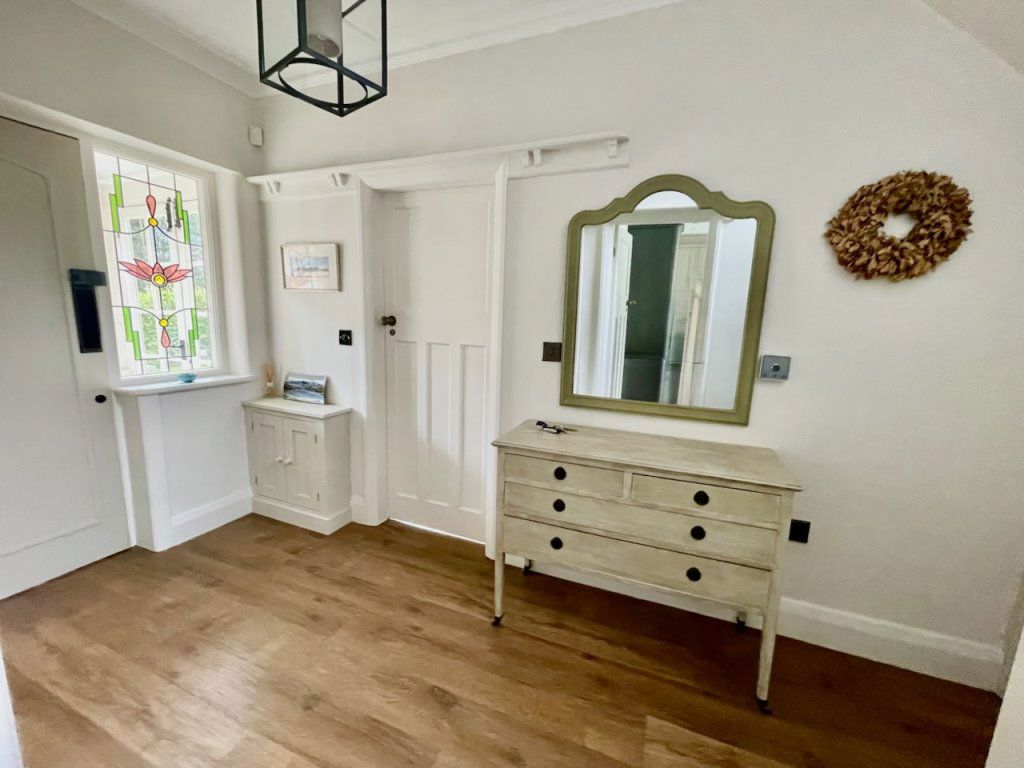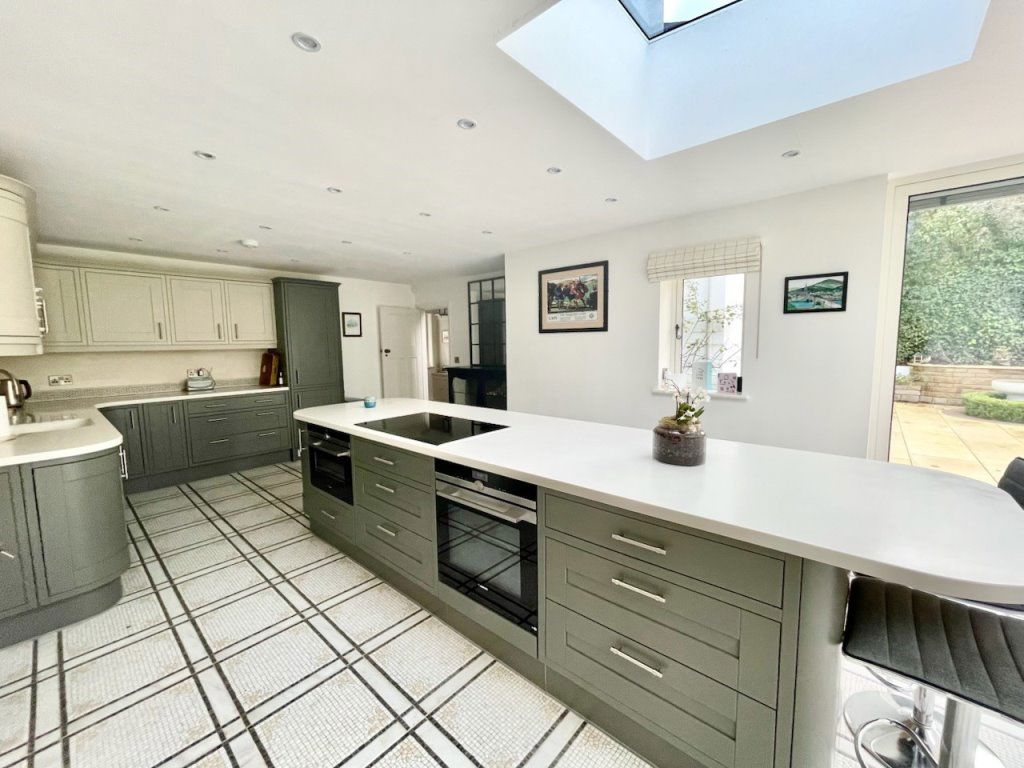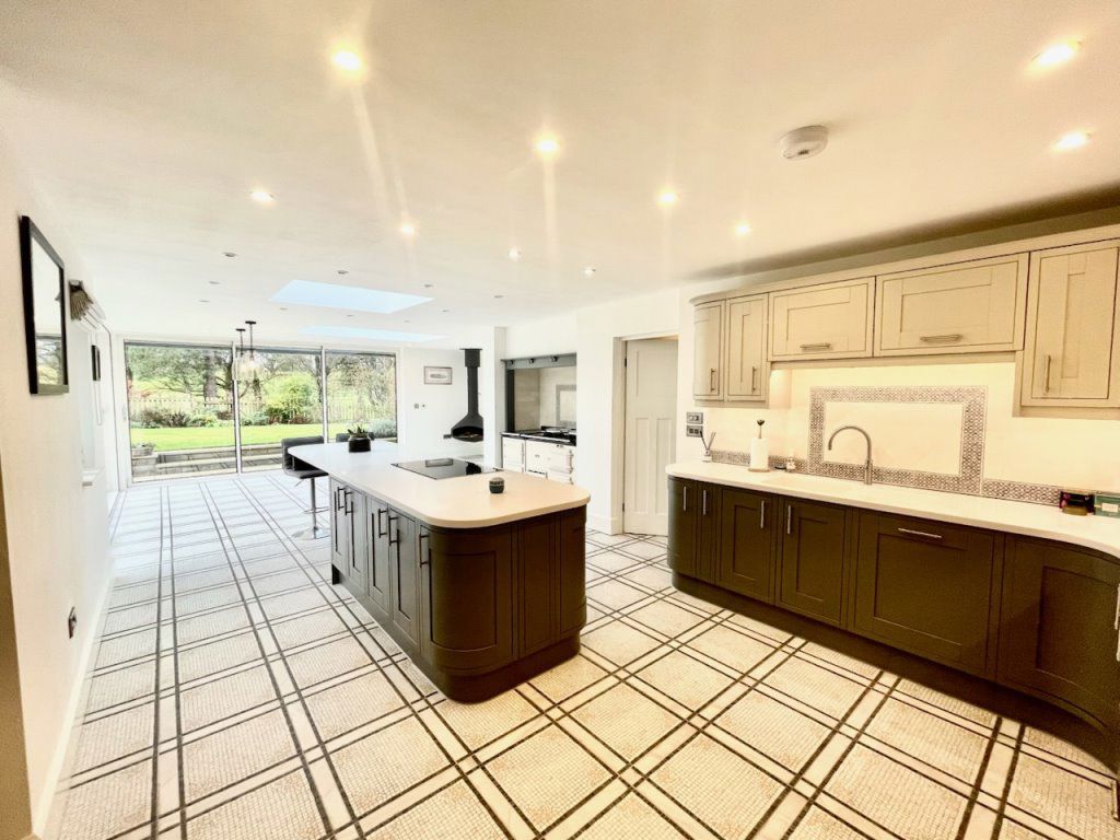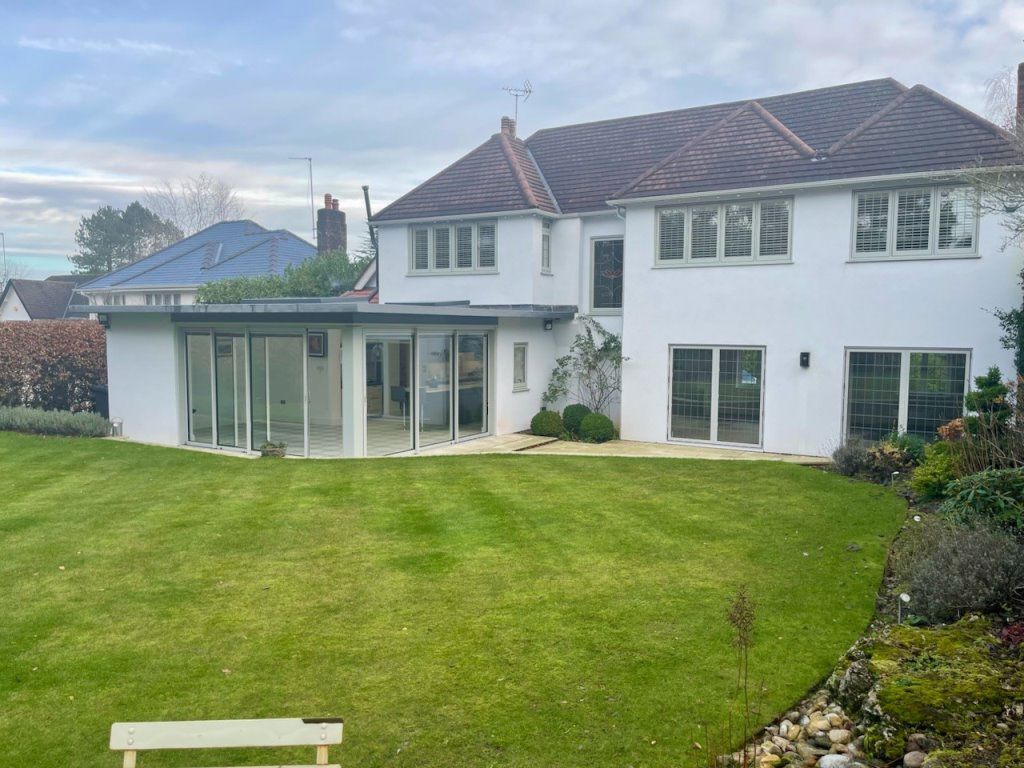 A STUNNING FOUR BEDROOM DETACHED PROPERTY! In a prime location set back and perched above the Macclesfield Road, with views over Prestbury Golf Course from the kitchen, formal living and the majority of the bedrooms. Located with just a short walk to the village, the house is a period style home that has been renovated to a high standard, featuring four bedrooms and four bathrooms, a luxurious kitchen/diner/living space, with two additional elegant sitting rooms. The property has been stylishly extended and is beautifully presented, offering more than 2500 square feet of accommodation. The property has a most appealing 1920/30s exterior with original features retained throughout. The property features a spacious driveway with parking for several vehicles and an attractive front garden. The house comprises and attractive porch with Minton flooring, which leads to a good-sized hall with wooden flooring. Large double aspect formal lounge, with French doors that lead onto the garden and provide delightful views over the paved terrace to the 11th hole. Sitting room with art deco fireplace and large bay window. A large kitchen, dining, living room complimented by Tessera floor tiling throughout and a customised kitchen with Corian work surfaces. The kitchen features include a dishwasher, Aga, Siemens cooker, fridge, microwave and Quooker tap. The living and dining areas have extensive full height sliding doors to the terrace and gardens, with views over the golf course. The kitchen area is complemented by underfloor heating and air conditioning. A bespoke spacious utility room with built in freezer and wine fridge and space for a washing machine and dryer. A wet room lies off the kitchen with side access to the garden. Completing the downstairs accommodation are a fully fitted office and store room. A staircase featuring a large stylish stained glass window leads to the upstairs accommodation. Off the landing are four well-proportioned double bedrooms. The principle bedroom suite enjoys a double aspect with views over the golf course, fitted wardrobes and an en-suite bathroom with large shower and Corian marble vanity unit. Bedroom two is also beautifully designed with rear views and a contemporary bathroom suite. Bedrooms three and four have extensive fitted wardrobes and are served by a large family bathroom designed by Fired Earth with free standing bath and stunning sanitary ware and tiling. The outside garden areas are landscaped with glorious views over the golf course, paved rear terrace, private parking and security lights and cameras. Energy Efficiency Rating C. Council Tax Band G. PF.