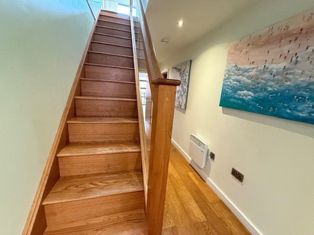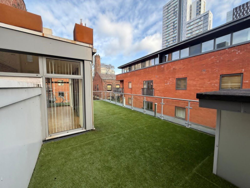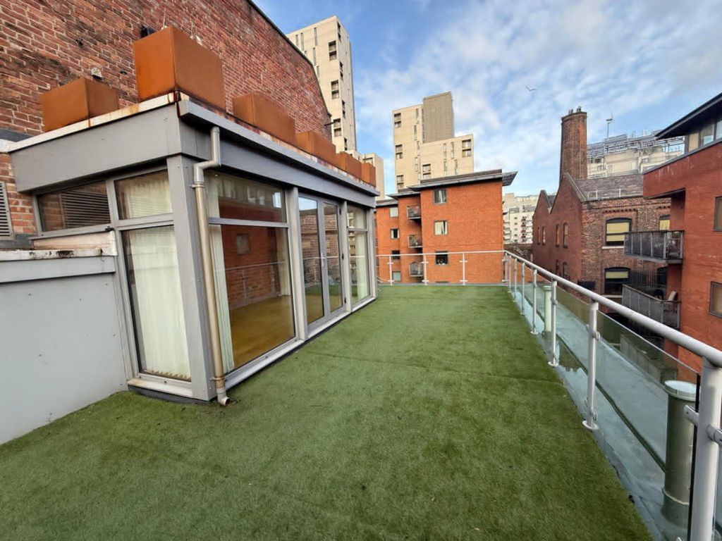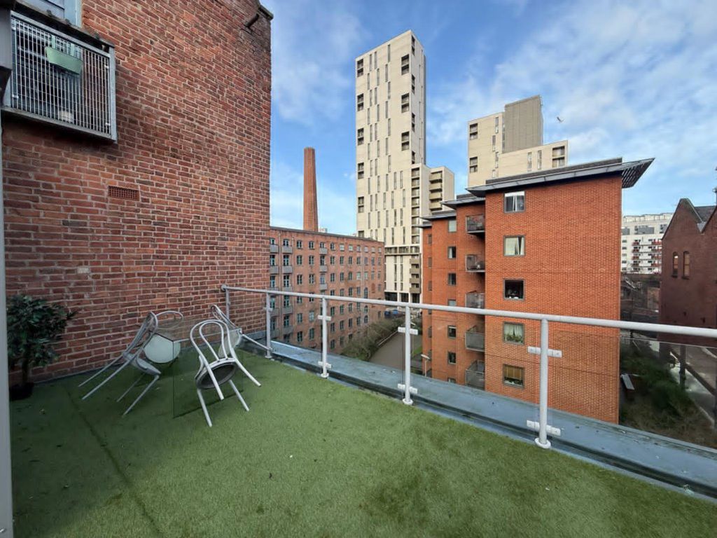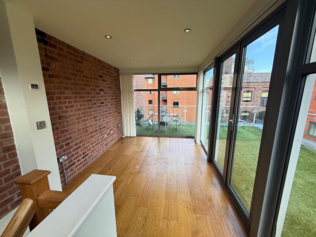 A PENTHOUSE WITH EXPOSED BRICKWORK AND STATEMENT ROOF TERRACE OVERLOOKING Manchester. A STUNNING duplex penthouse defined by light, space and an extraordinary rooftop terrace commanding panoramic city views. A spacious entrance hall with cloakroom leads to a beautifully appointed open-plan living, dining and bespoke kitchen area, finished to a high specification and opening onto a private balcony. The principal suite enjoys a wraparound balcony, additional Velux window and a luxurious en-suite shower room, while the second double bedroom features its own elegant en-suite bathroom. A striking glass-panel staircase ascends to a stunning glazed sun lounge, flowing seamlessly onto the expansive roof terrace an exceptional private sanctuary in the sky, perfectly designed for sophisticated entertaining and sunset views across Manchester’s skyline. FULLY FURNISHED. EPC TO FOLLOW. AVAILABLE NOW.