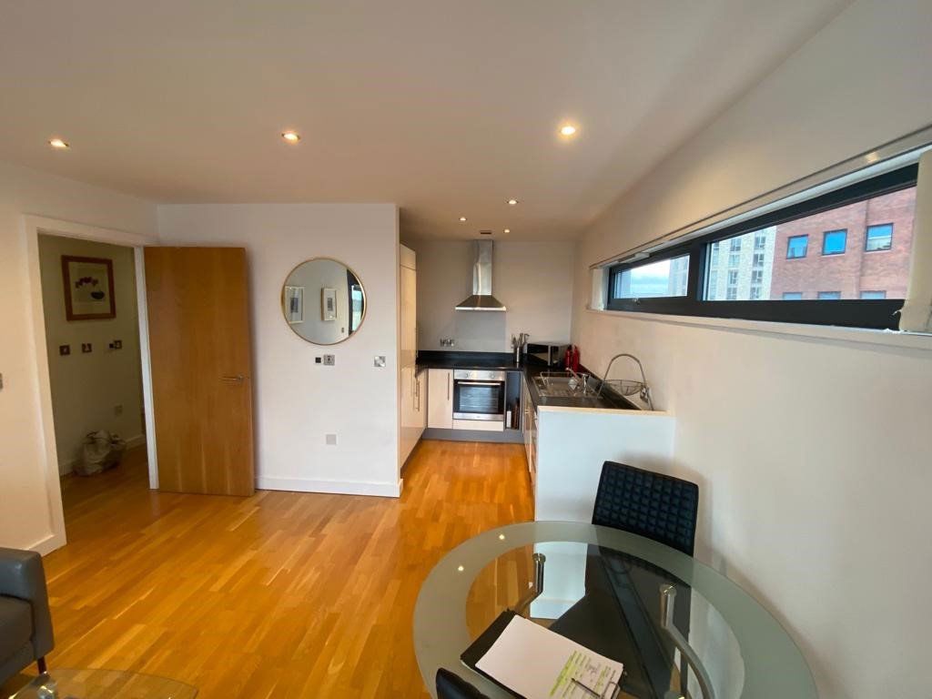 A FOURTH FLOOR modern high rise apartment with secure private parking in the centre of Salford Quays Media City with its modern cafes, bars and restaurants and useful metro link on the doorstep. This stunning apartment comprises of ;- Open plan lounge dining room/living room/kitchen with fully fitted appliances including electric oven and hob, microvwave, and integrated fridge freezer fabulous views of the canal and quays with floor to ceiling windows making this a bright and welcoming room, a good sized outside balcony with seating for al fresco dining is accessible from the lounge. A double bedroom with wardrobes and bedside cabinets and views again over the canal. A useful stgorage room holding the washer/dryer in the hallway and a modern bathroom with bath, overhead shower, wc and hand basin. PRIVATE UNDERGROUND PARKING INCLUDED. FF. EPC GRADE D. 12 MONTH CONTRACTS PREFERRED. AVAILABLE 15/5/2026