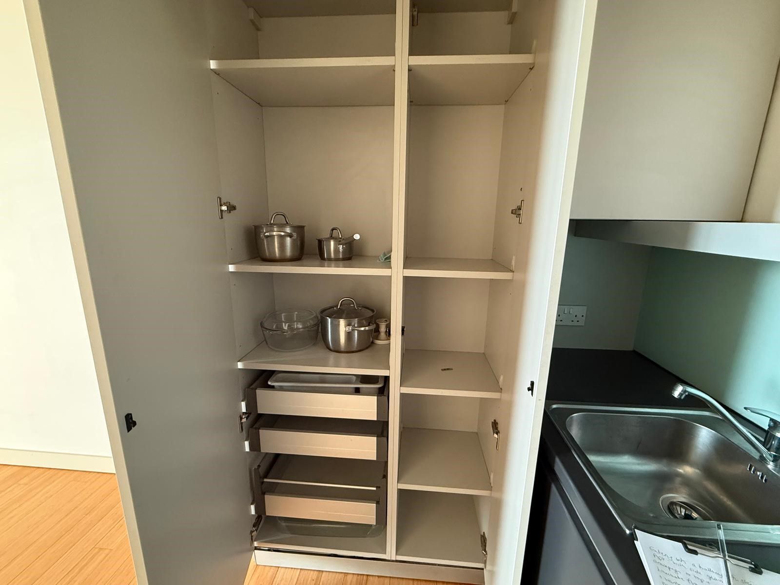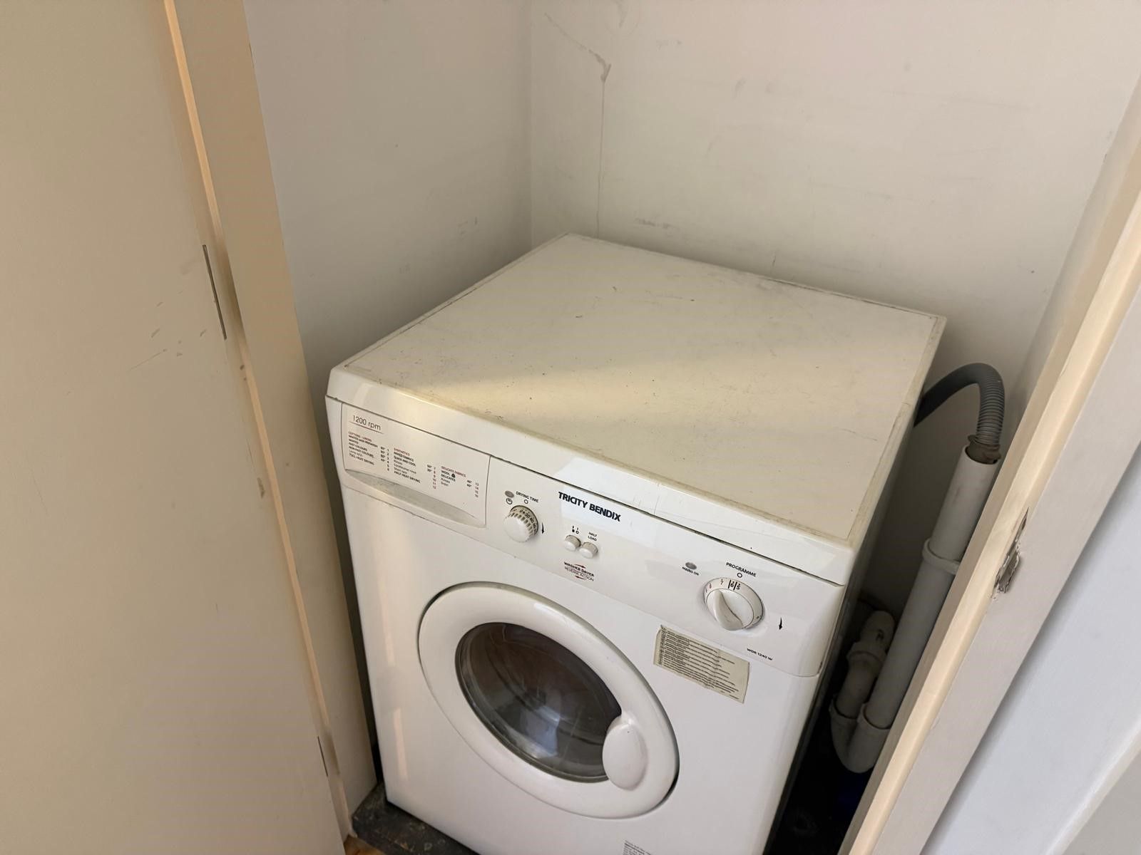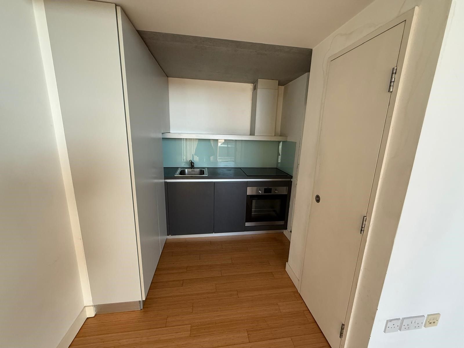 The large living room is bright and airy and has full floor to ceiling patio doors and windows to the balcony area making this room very inviting and light, with large blinds to the windows and laminate flooring. The living room opens up to the modern kitchen area. There are power points and internet points to this room.