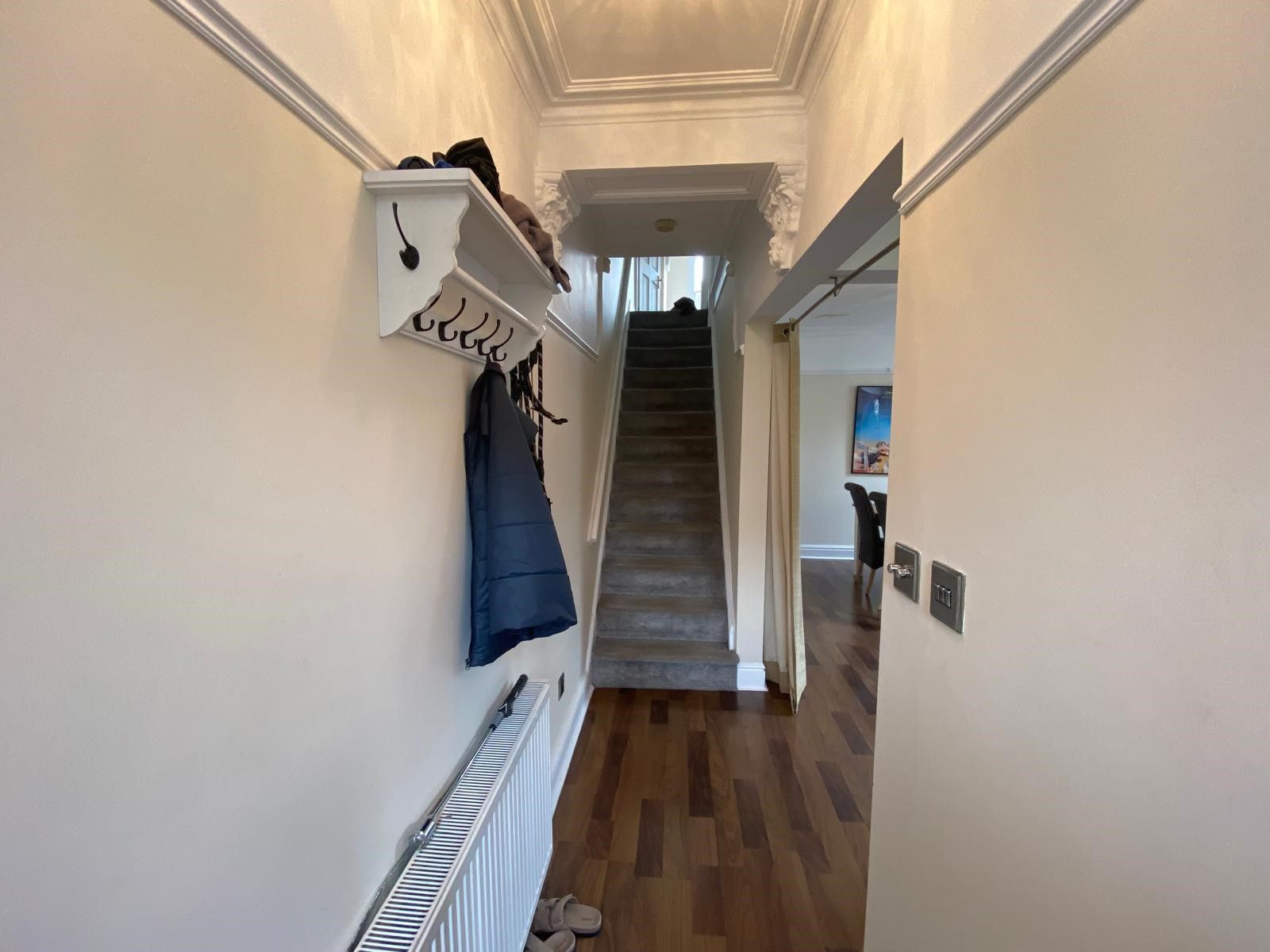 Step through the charming brick porch into this exquisite period property, where the entrance reveals a quintessential Victorian hallway adorned with an elegant picture rail and ornate cornices that gracefully frame the staircase.