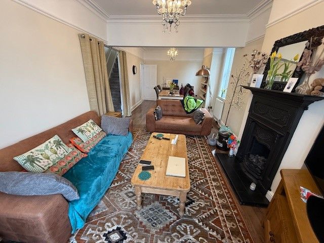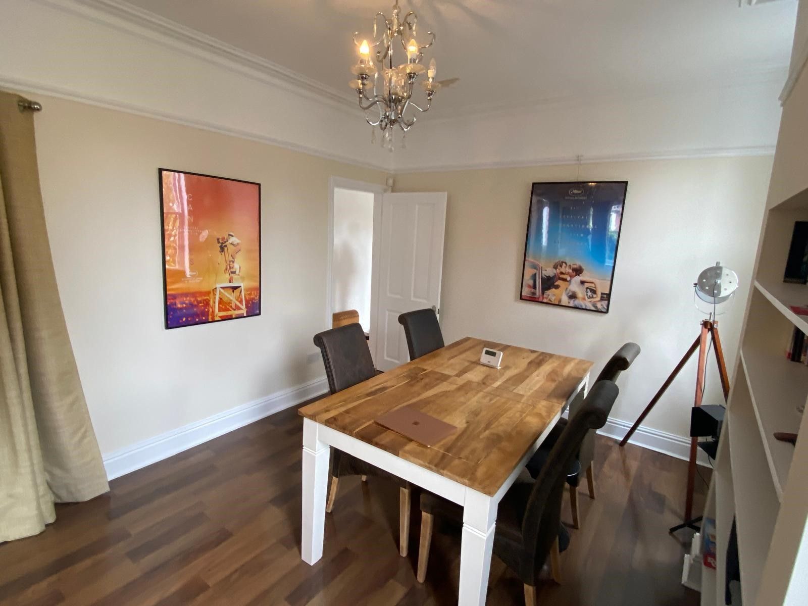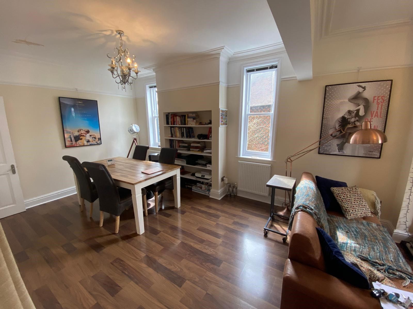 The living room seamlessly transitions into a bright and airy dining area, enhanced by dual period sash windows ? double glazed and perfectly positioned to capture side-facing light. The rich wooden flooring continues throughout, while a striking central chandelier accentuates the room?s sense of grandeur, beautifully reflecting the timeless elegance of this distinguished property.