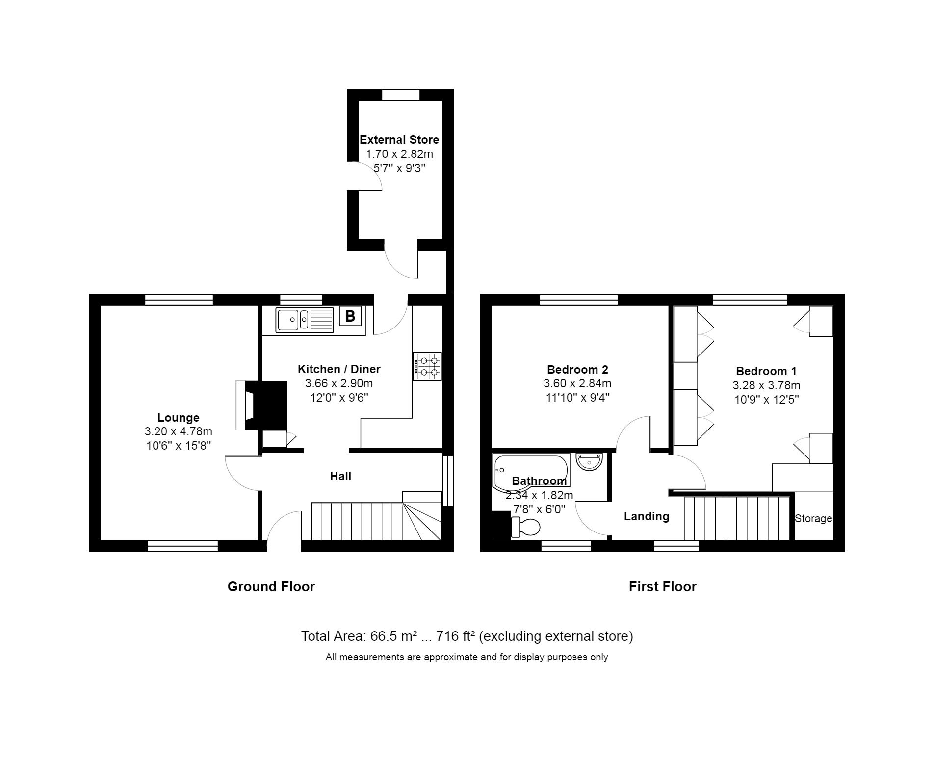 Kitchen (Dimensions : 3.66m (12' 0") x 2.90m (9' 6"))