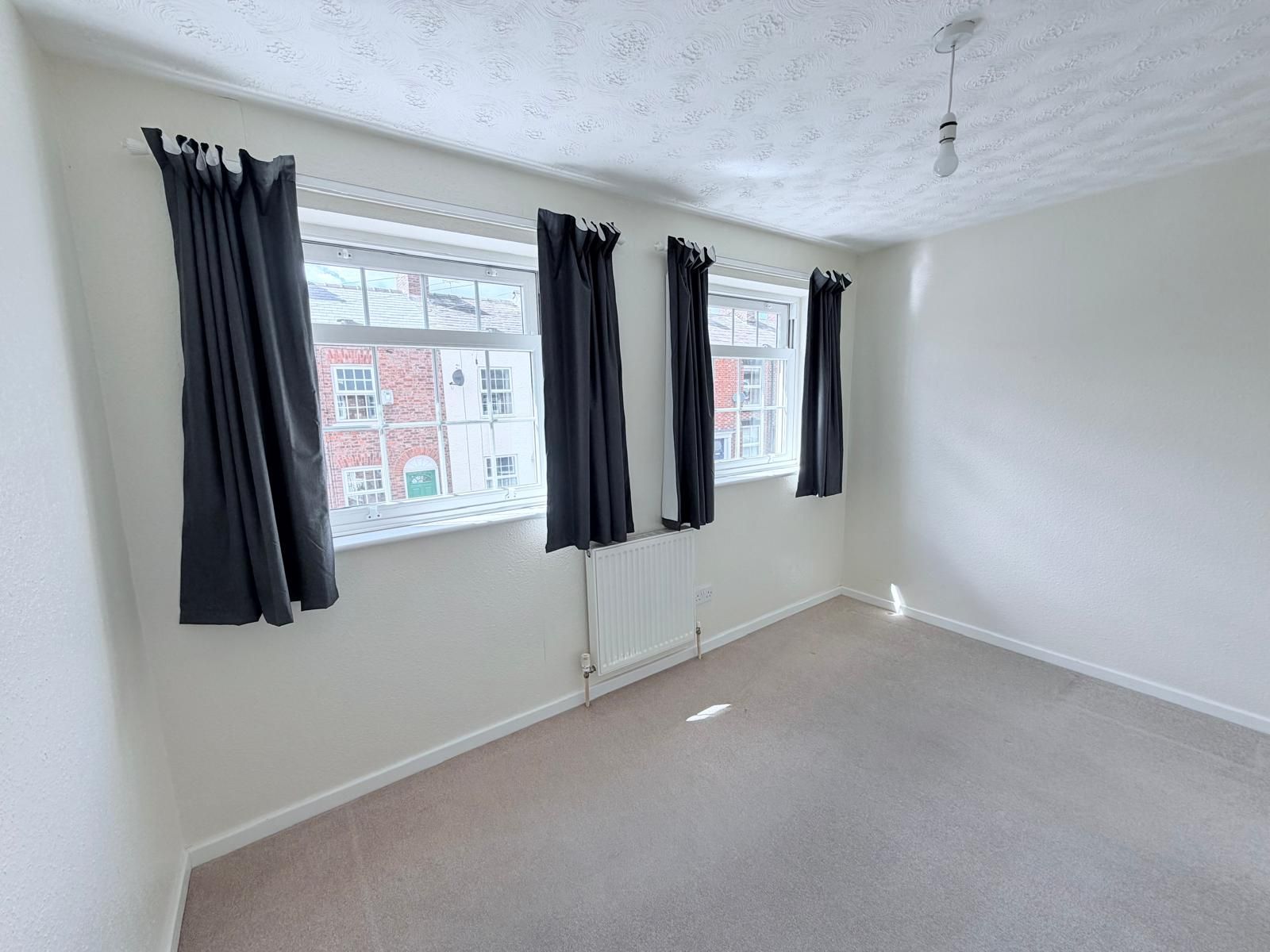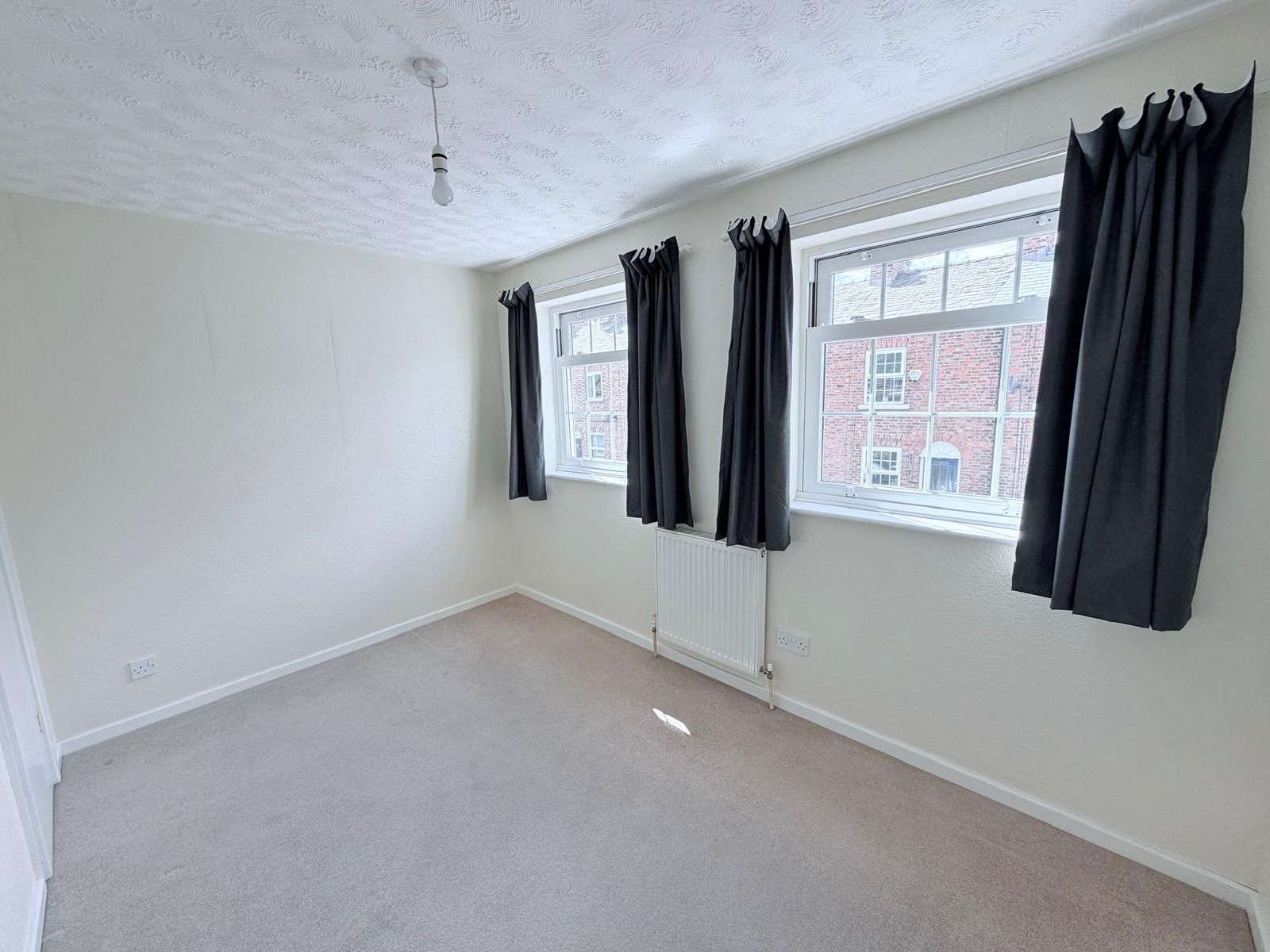 Bedroom 1 ? A comfortable room featuring carpeted flooring, a radiator, and two UPVC sash windows to the rear elevation, complete with rails and curtains. Includes a ceiling light, two double power points, and a freestanding wardrobe.