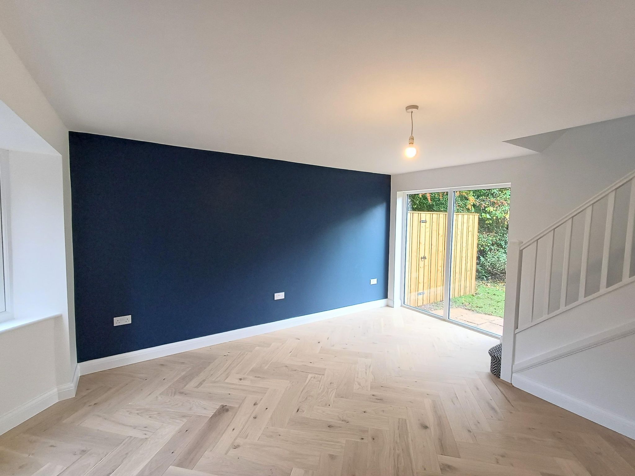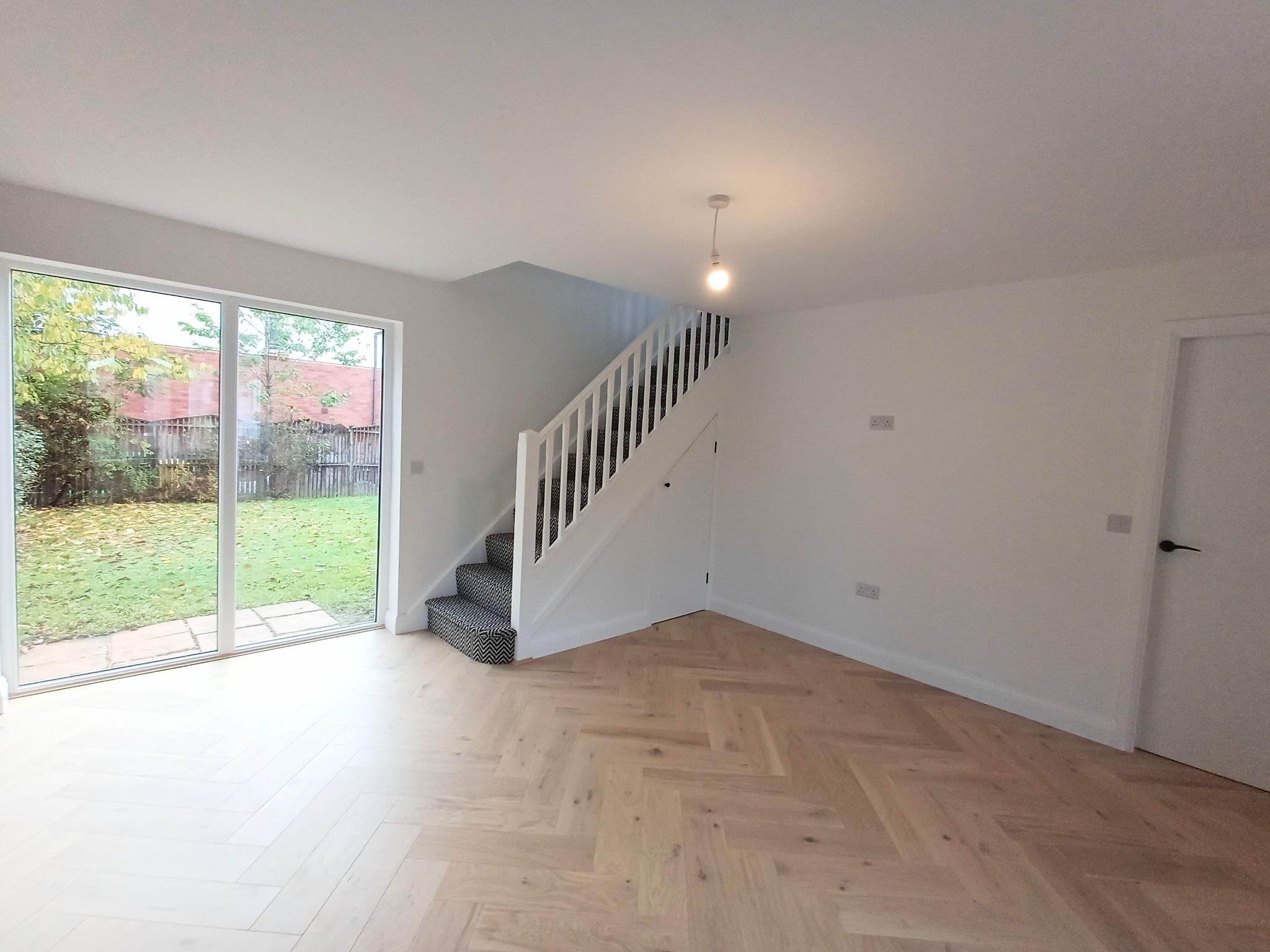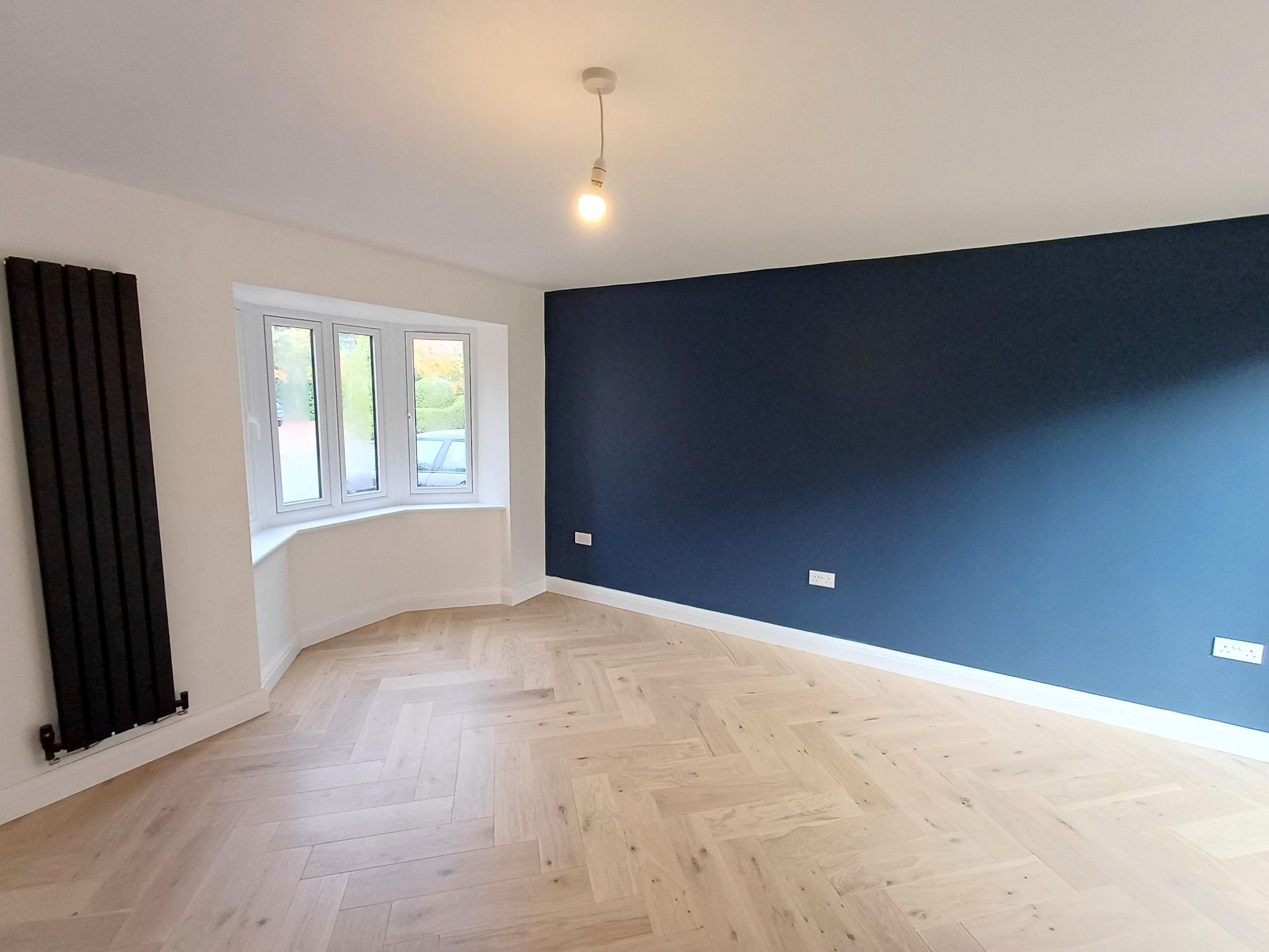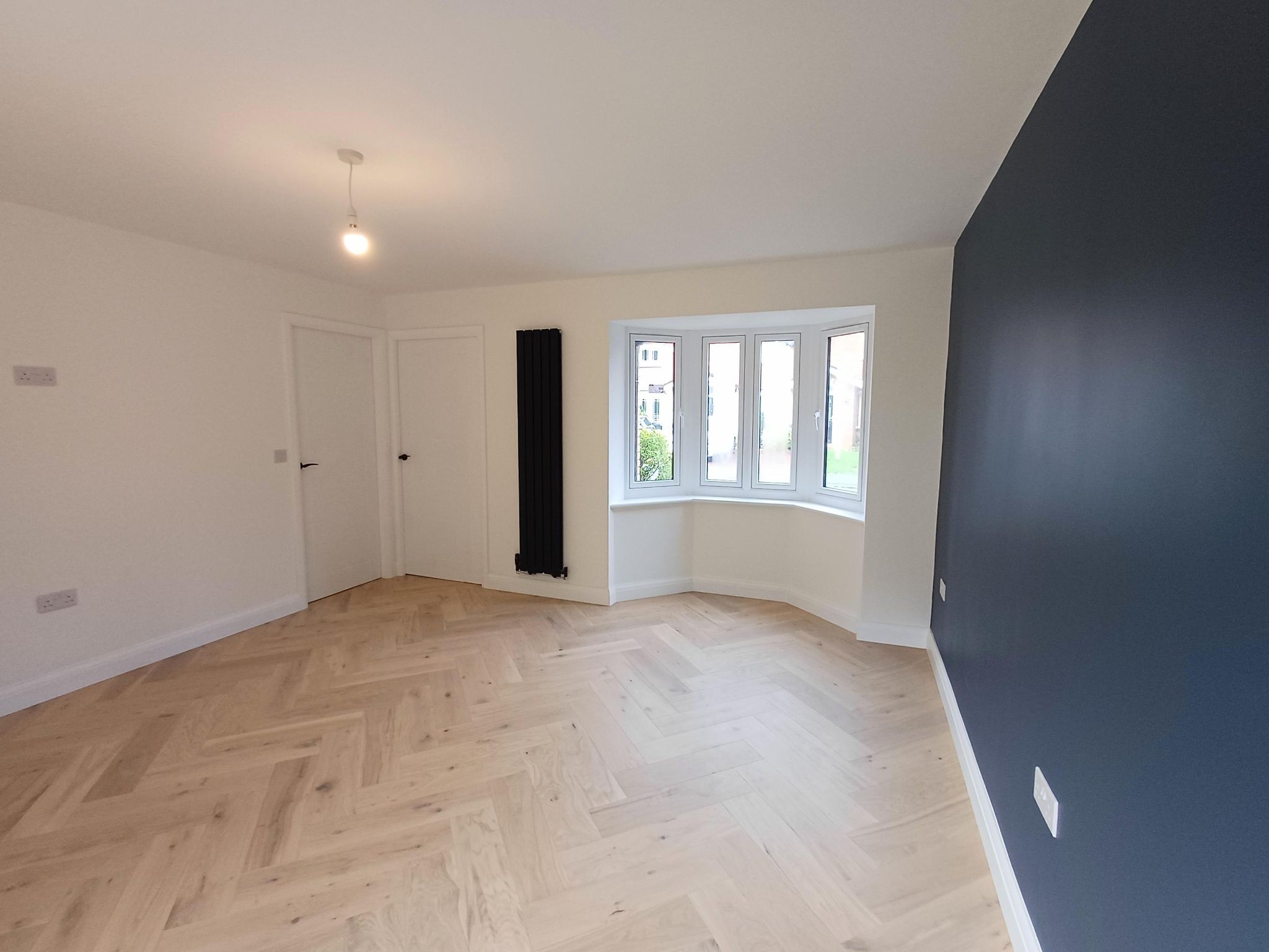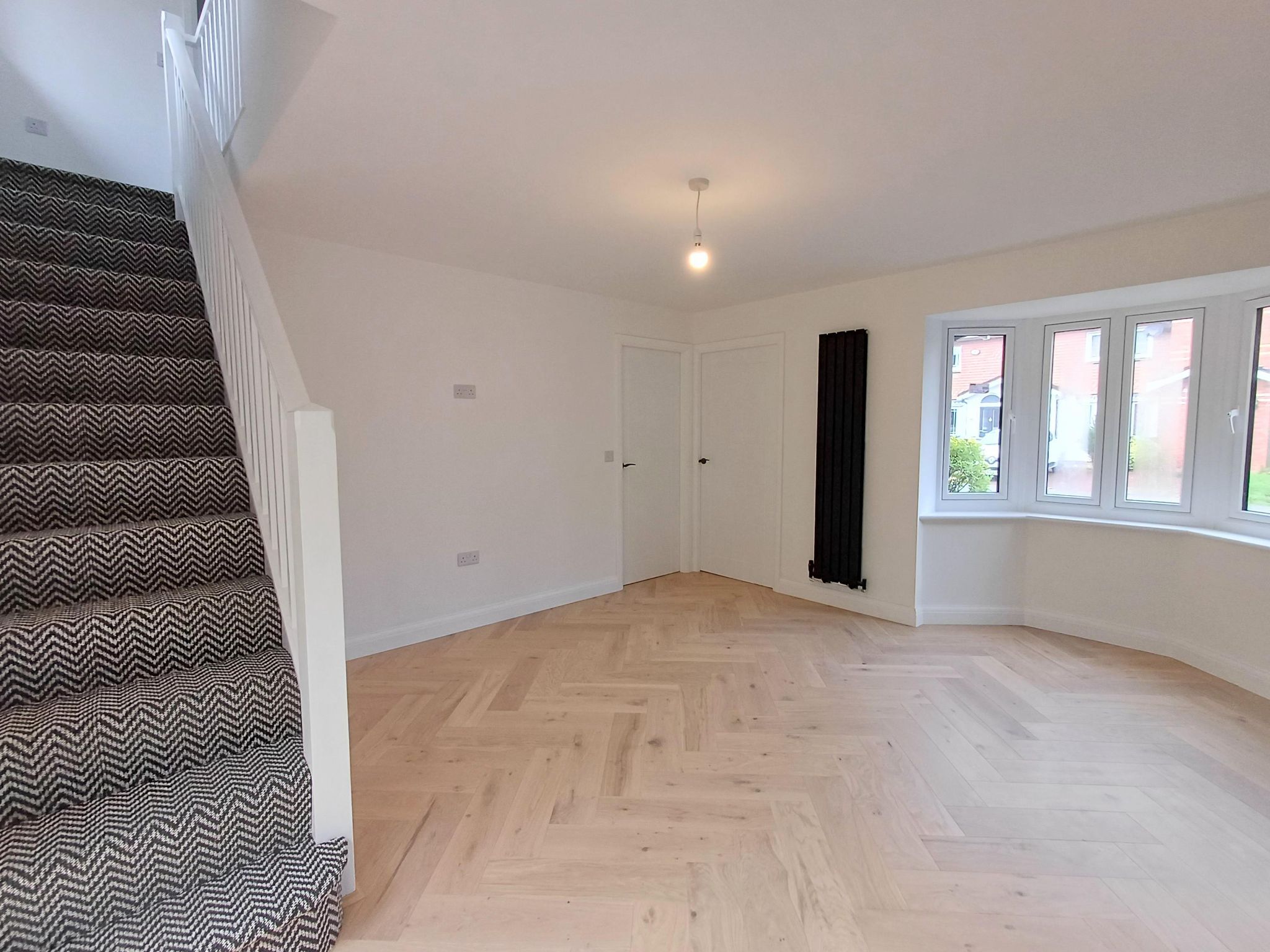 Wooden door, light wood herring bone flooring, double glazed bay window to the front elevation, double glazed picture window to the rear elevation, central ceiling light, ladder radiator, under stairs storage, power points.
