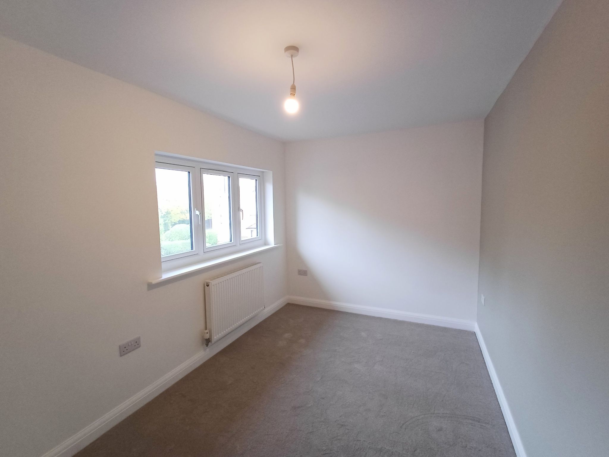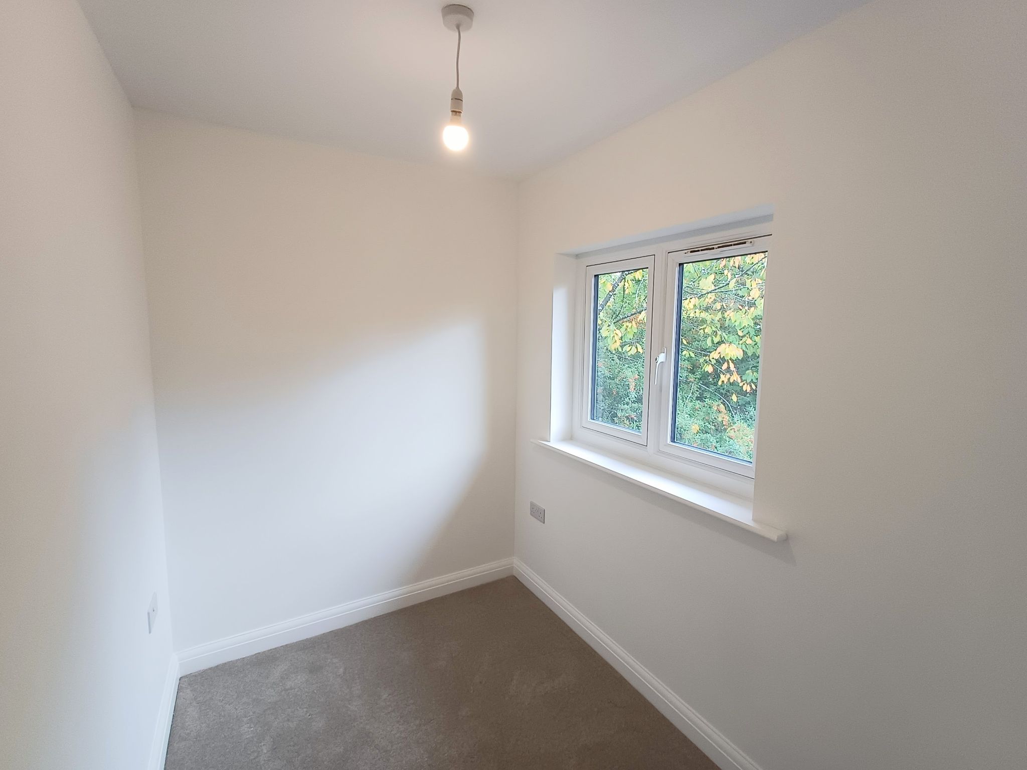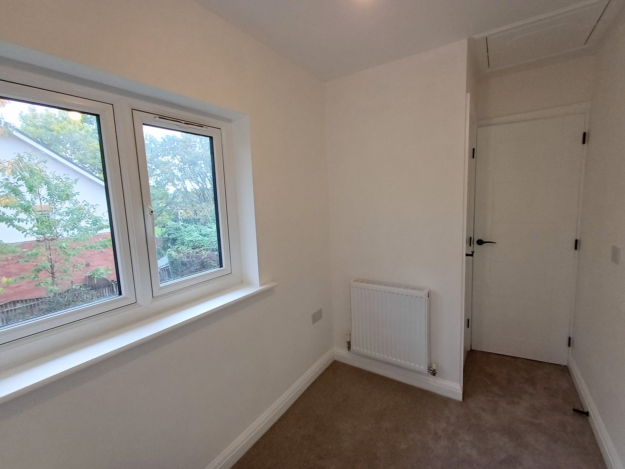 Wooden door, double glazed window to the rear elevation, carpet flooring, central ceiling light, radiator, power points.