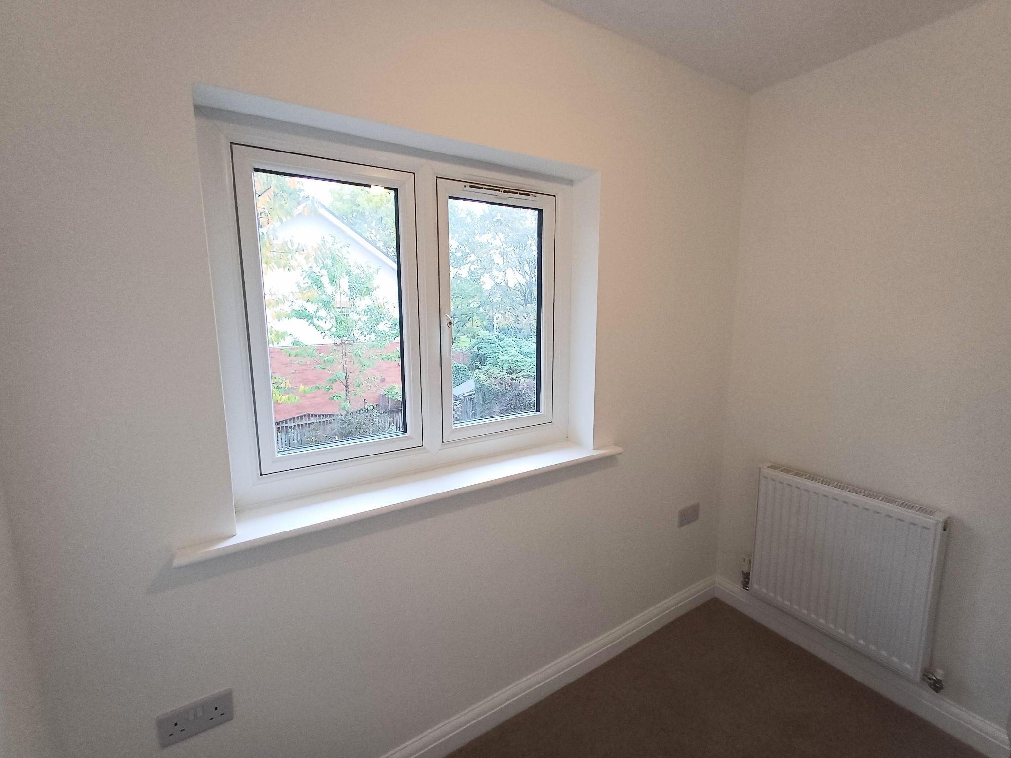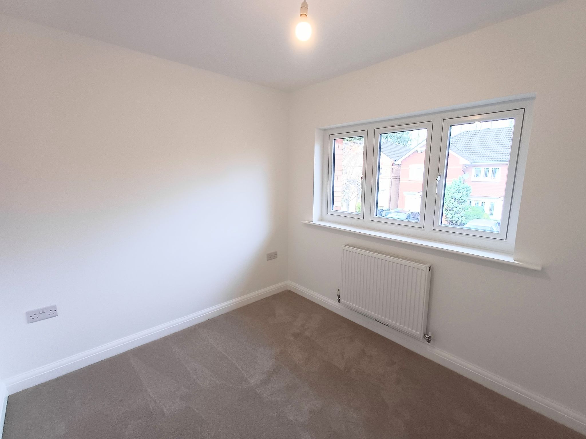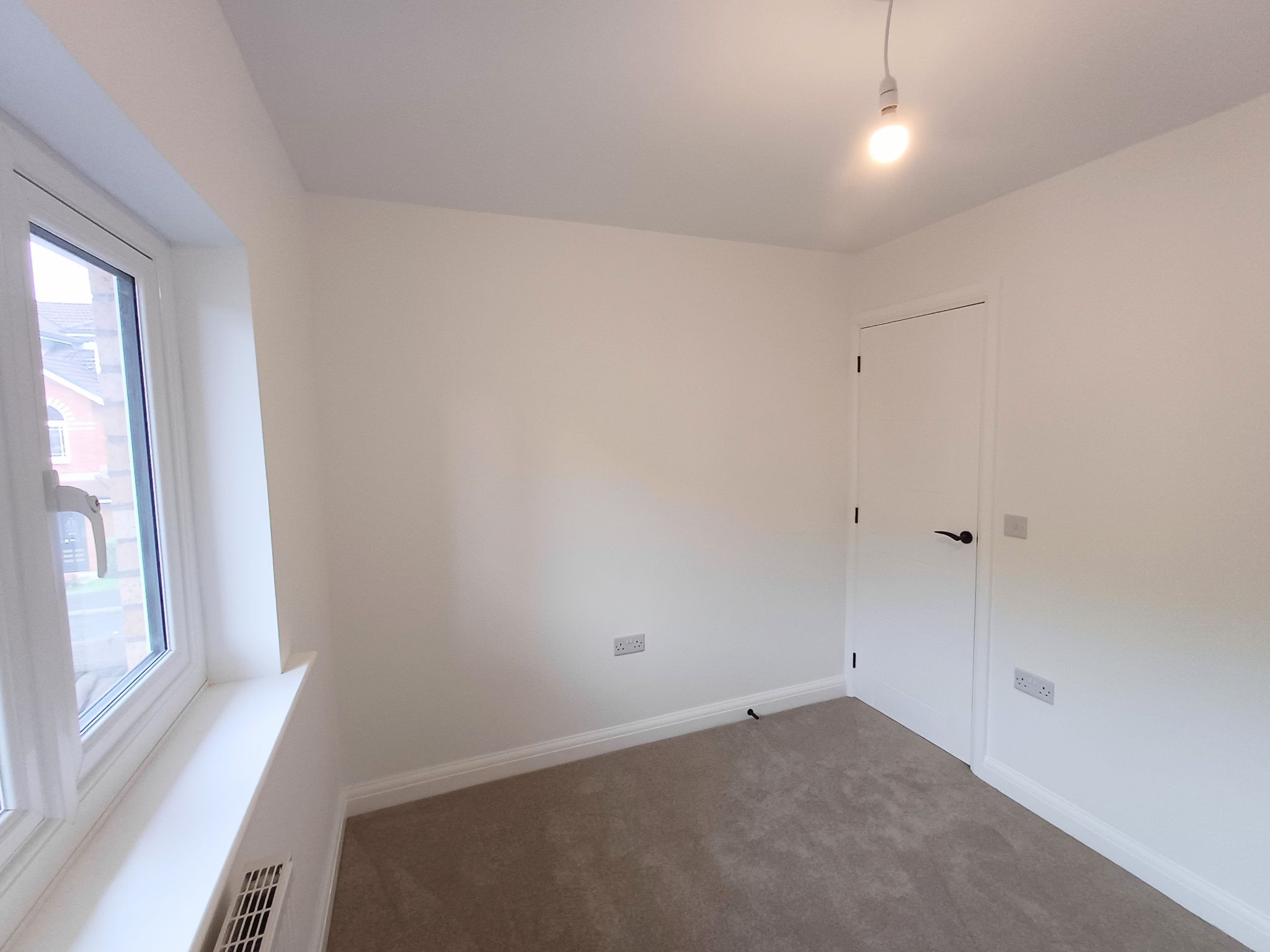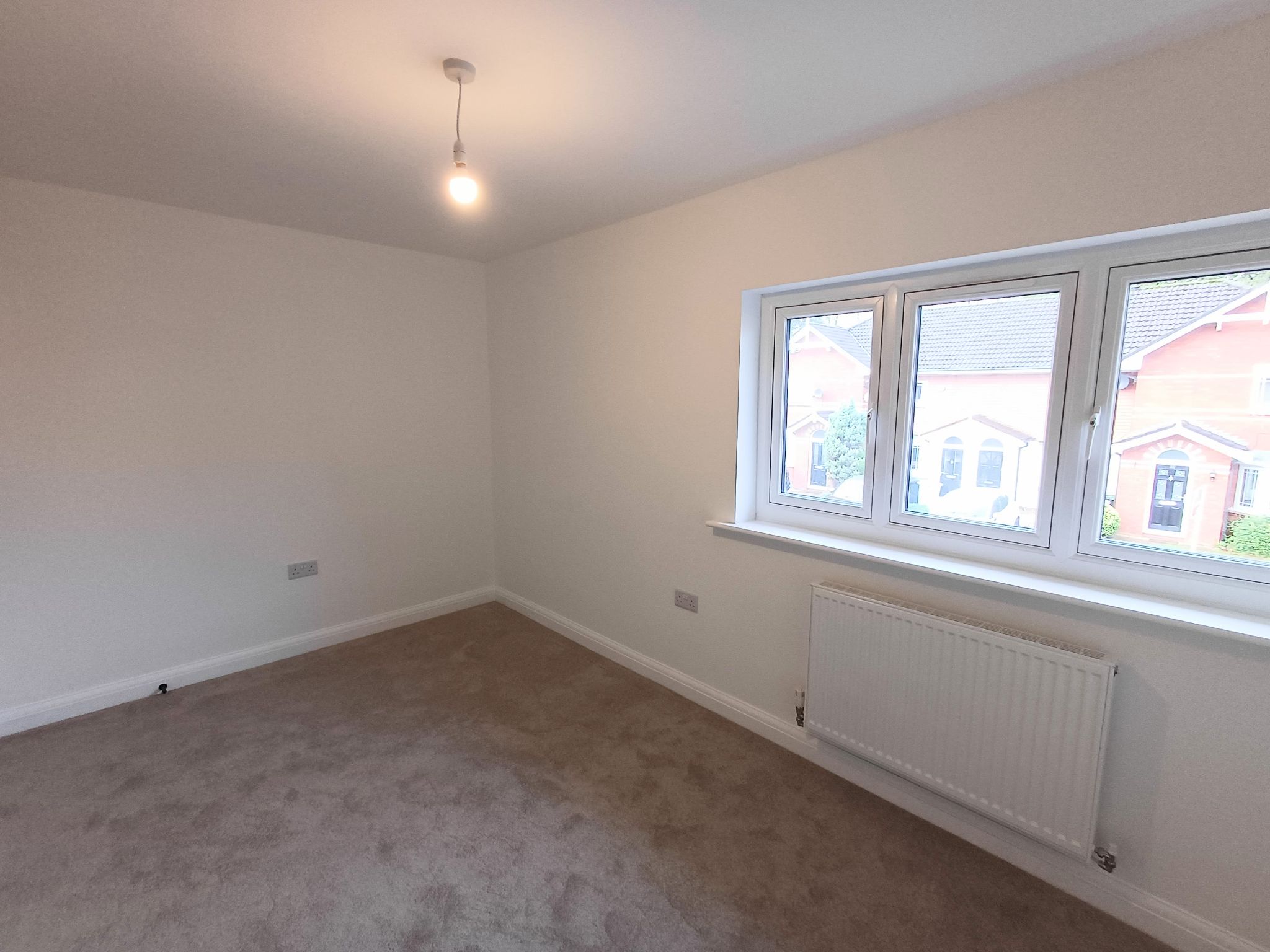 Wooden door, double glazed window to the rear elevation, carpet flooring, central ceiling light, radiator, power points.